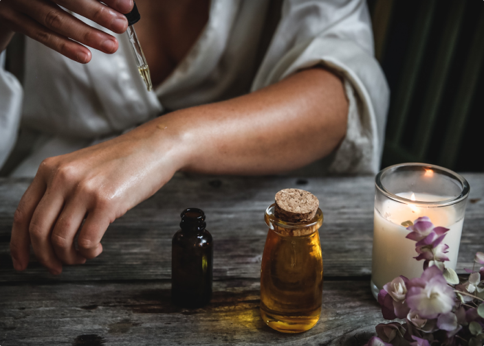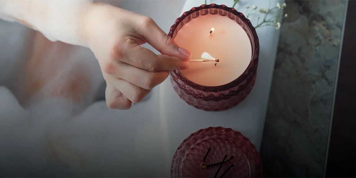 You can use scented candles, fragrance sticks, incense, an oil burner, or a diffuser with a few drops of essential oil.